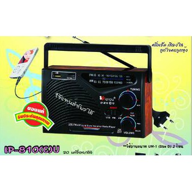 iplay วิทยุ USB / AM / FM / Audio System รุ่น IP-810 (C) U สีไม้ คุณภาพคุ้มค่า ในราคาพอเพียง คลื่นชัด เสียงใส ถูกใจคอลูกทุ่ง ใช้ถ่านขนาด UM-1 ก้อนใหญ่ 2 ก้อน สามารถเสียบไฟบ้านได้ มีสายแถมให้ - ลำโพงเกรด A - ช่อง AUX ขนาด 3.5 มม. - ช่องเสียบหูฟัง - รับคลื่น FM/AM ชัดเจน - ใช้ได้ทั้งไฟบ้านและแบตเตอร์รี่ - ช่องเสียบหม้อแปลงไฟ - เสาอากาศยาวพิเศษหมุนได้ 360 องศา ปรับ EQ ได้ 3 รูปแบบ