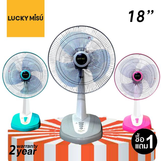 ซื้อ 1 แถม 1 Lucky Misu 18" พัดลมตั้งโต๊ะ LM 168 (เลือกสีได้) เทา ชมพู เขียวน้ำทะเล