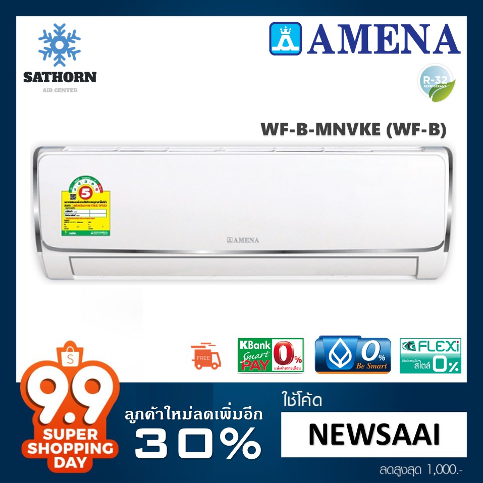 - แอร์ติดผนังอามีน่า (Amena) รุ่น WF-B - R32 - ประหยัดไฟเบอร์ 5 รุ่นล่าสุดปี 2018 ผ่อนได้ไหม?